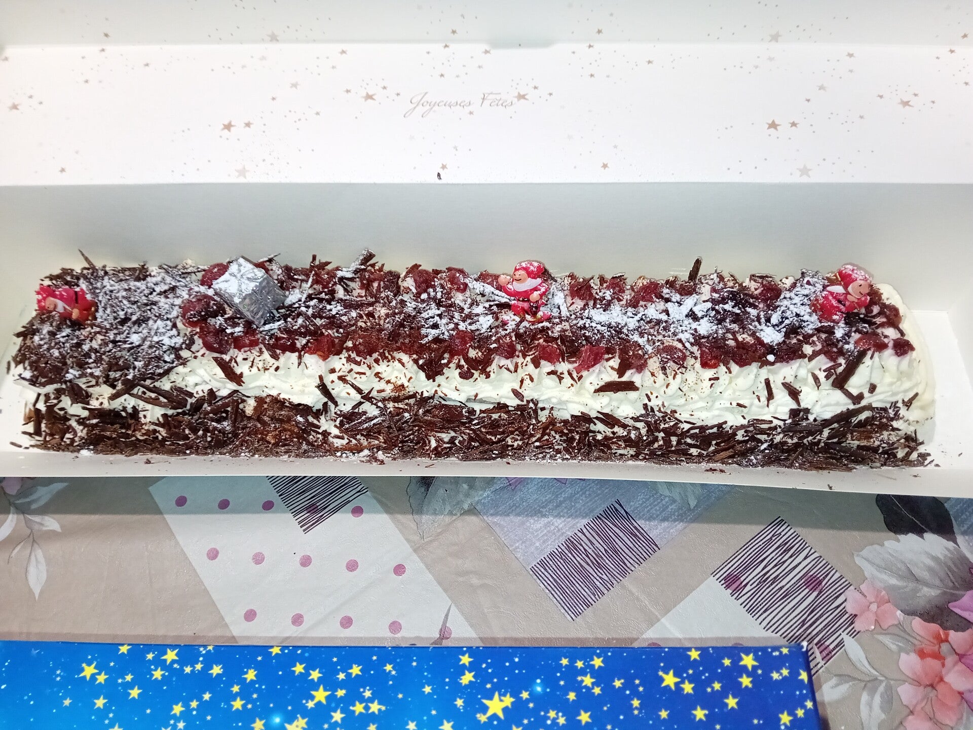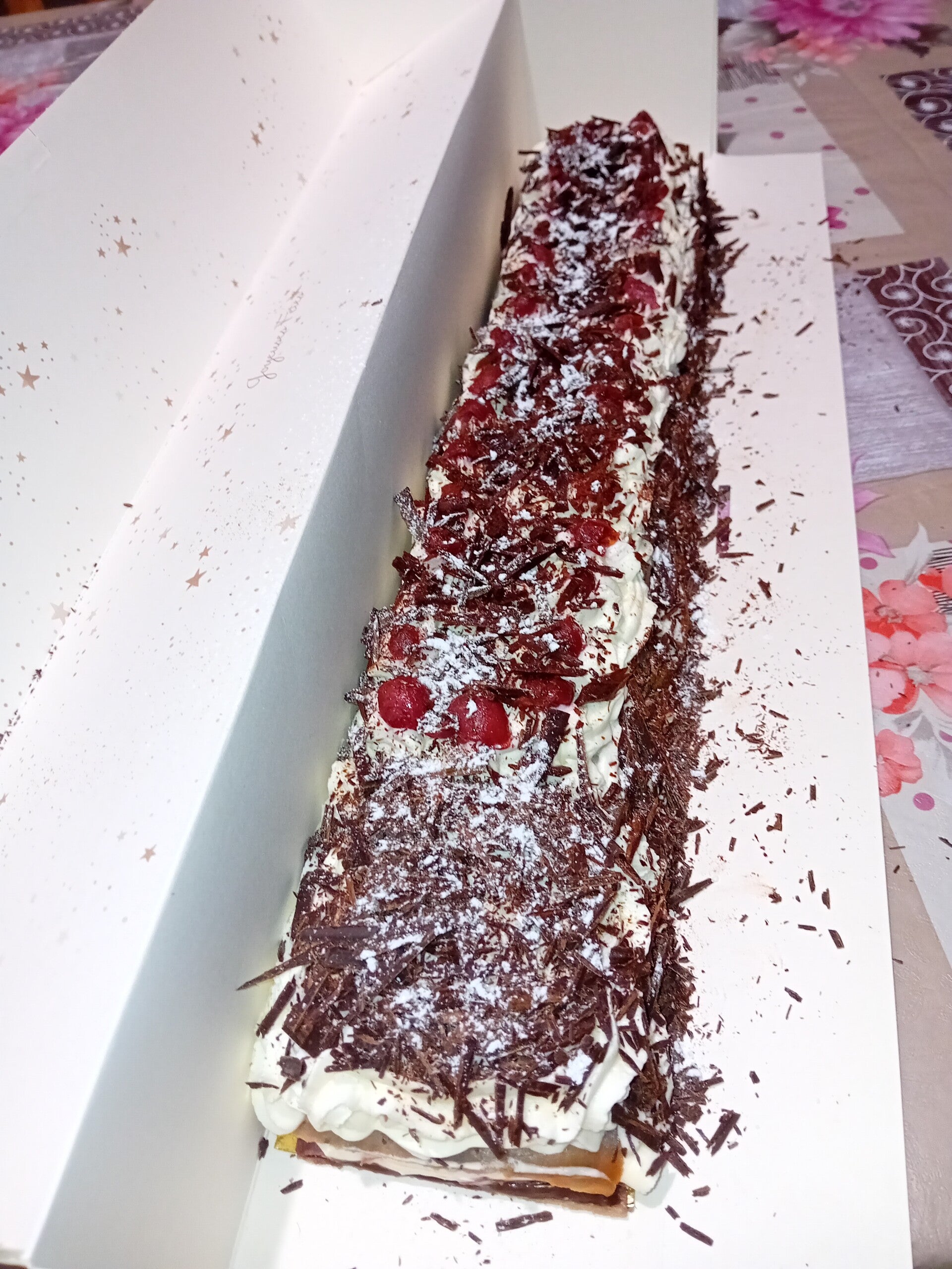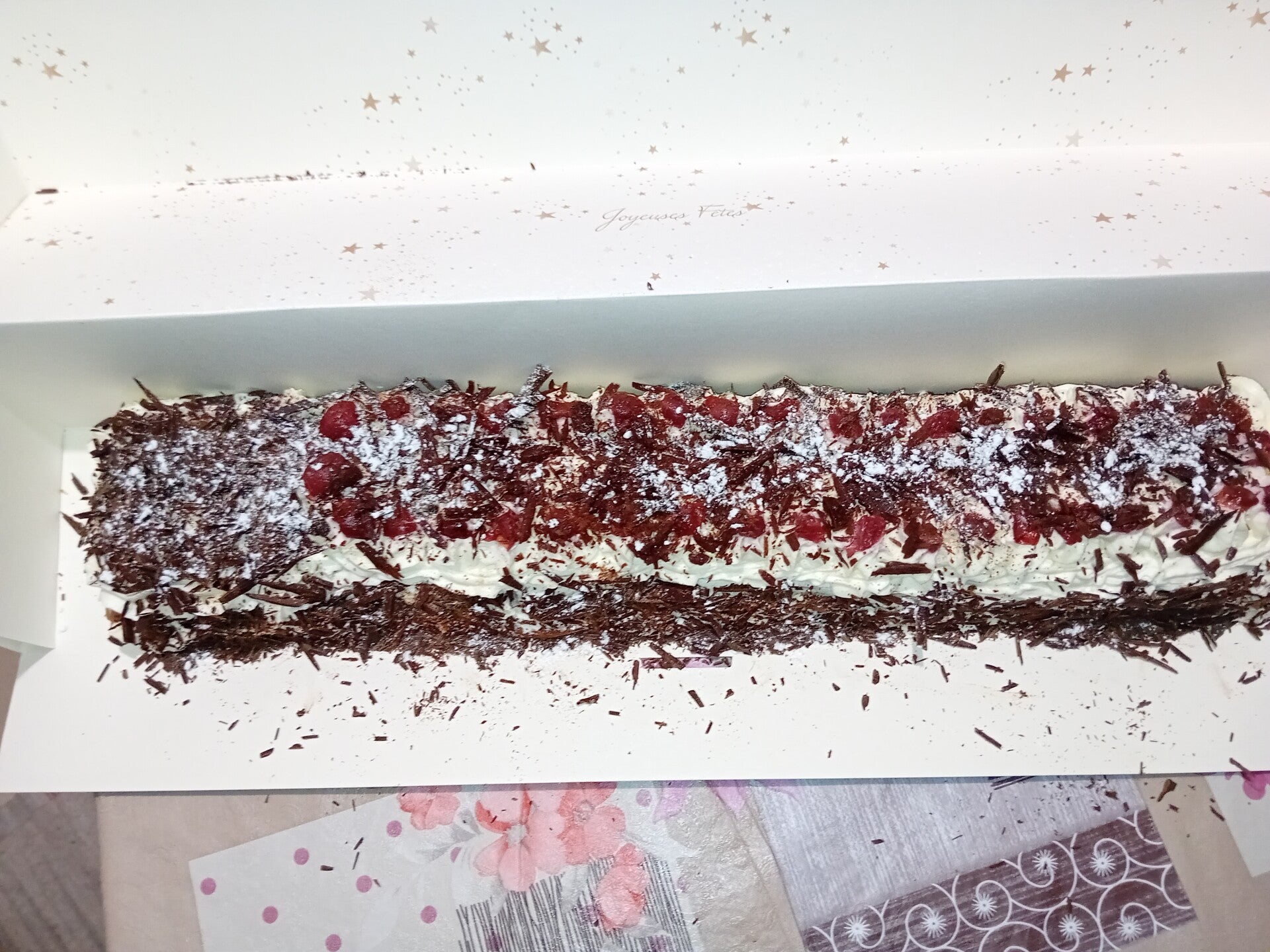 Délicieux et parfait pour Noël je vous propose cette buche forêt noire elle contient :